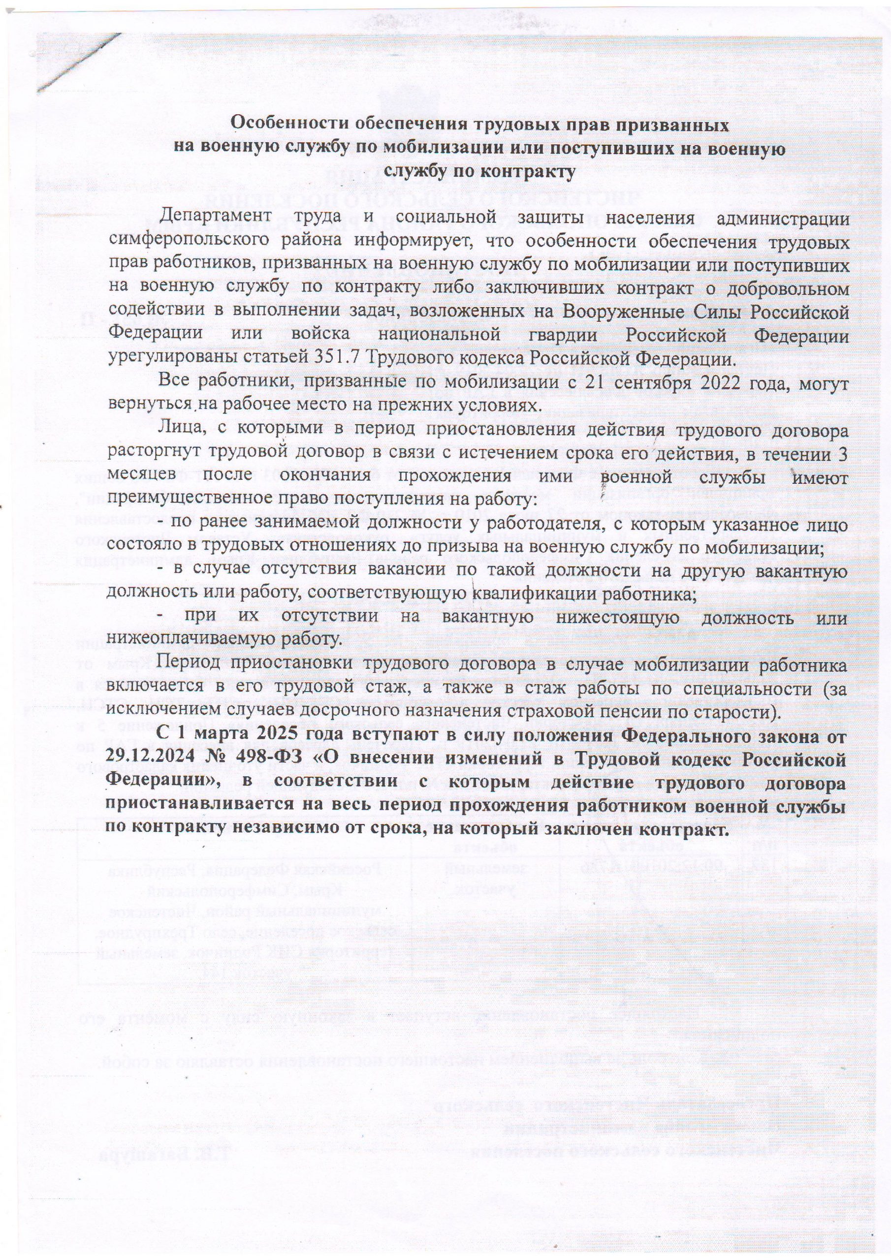 Особенности обеспечения трудовых прав призванных на военную службу по мобилизации или поступивших на военную службу по контракту
